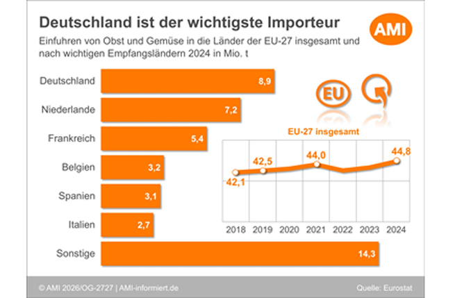 Deutschland bleibt wichtigster Importeur von Obst und Gemüse in der EU